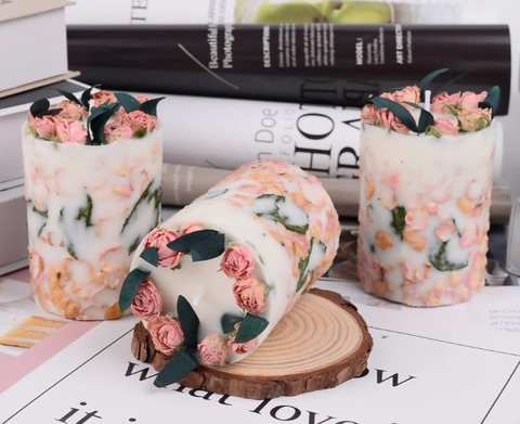 本物のバラの花びらを封じ込めた、香りと視覚を楽しむドライフラワーアロマキャンドルです。