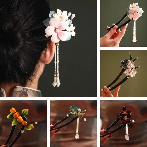 同時に、(u字型かんざし)そのデザインは現代の日常にも自然に溶け込みます。ナチュラルな木地の温かみと、控えめで奥ゆかしい花のモチーフは、洋装のワンポイントとしても、さりげない上品さを演出。普段使いのワンピースやセーターに合わせても、ちょうどよいアクセントとなります。
